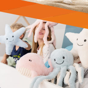 Die drei Modelle – Wal, Seestern und Oktopus – gibt es in vier zauberhaften Pastellfarben: Grün, Blau, Rosa und Creme.