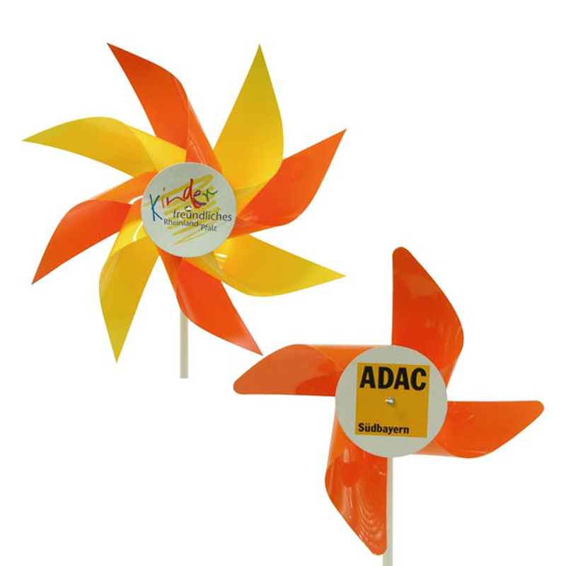Zweifarbige Kombination möglich. Andere Farbtöne, transparentes Material oder Druck auf der Windmühle auf Anfrage möglich.