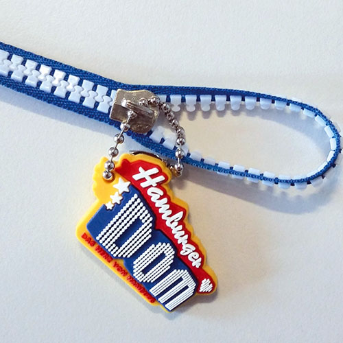 Dieses Umhängeband im Reißverschluss-Design und einem 2D Soft-Label-Anhänger ist DER Hingucker unter den Lanyards und reizt den haptischen Spieltrieb. Die farbliche Gestaltung ist frei wählbar, der Reißverschluss kann mit oder ohne Stoff gewählt werden. Das Band ist am Ende mit einem Karabinerhaken und/oder einem Handyanhänger ausgestattet.